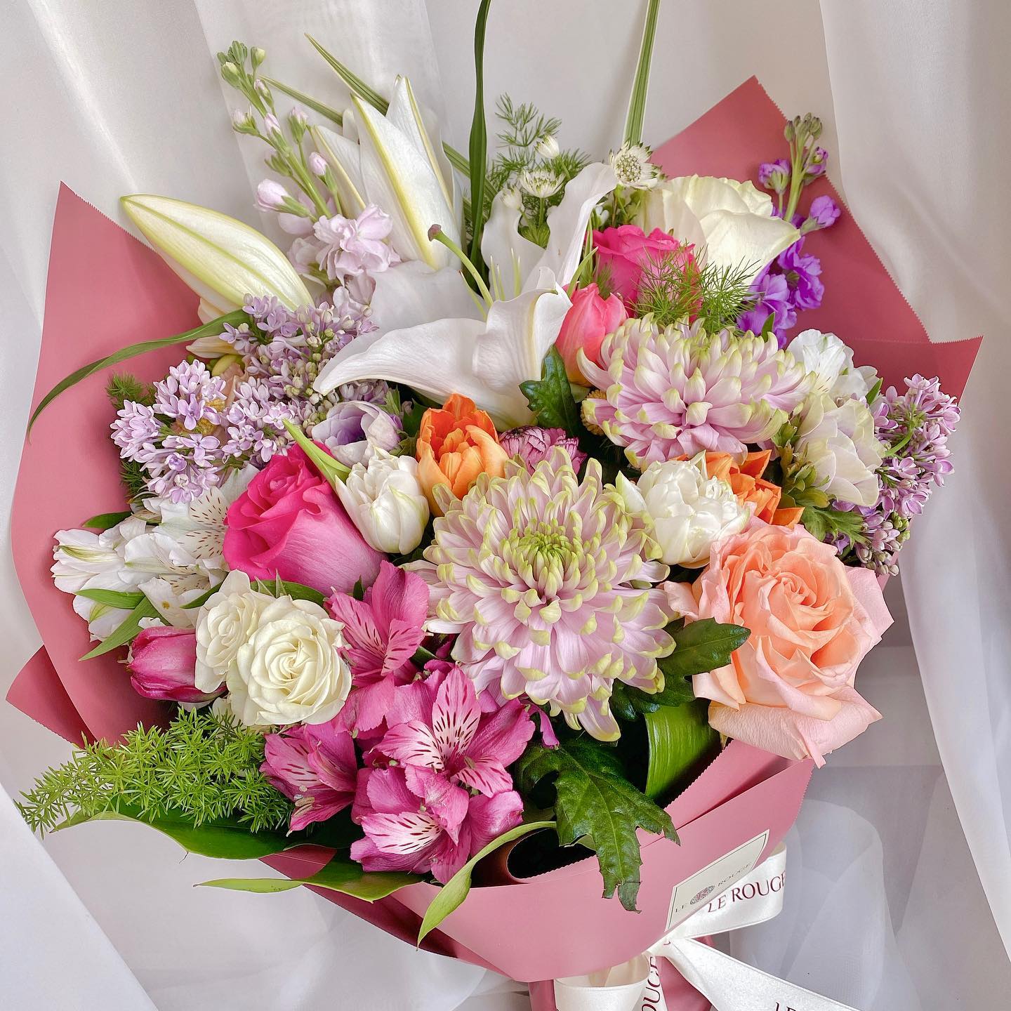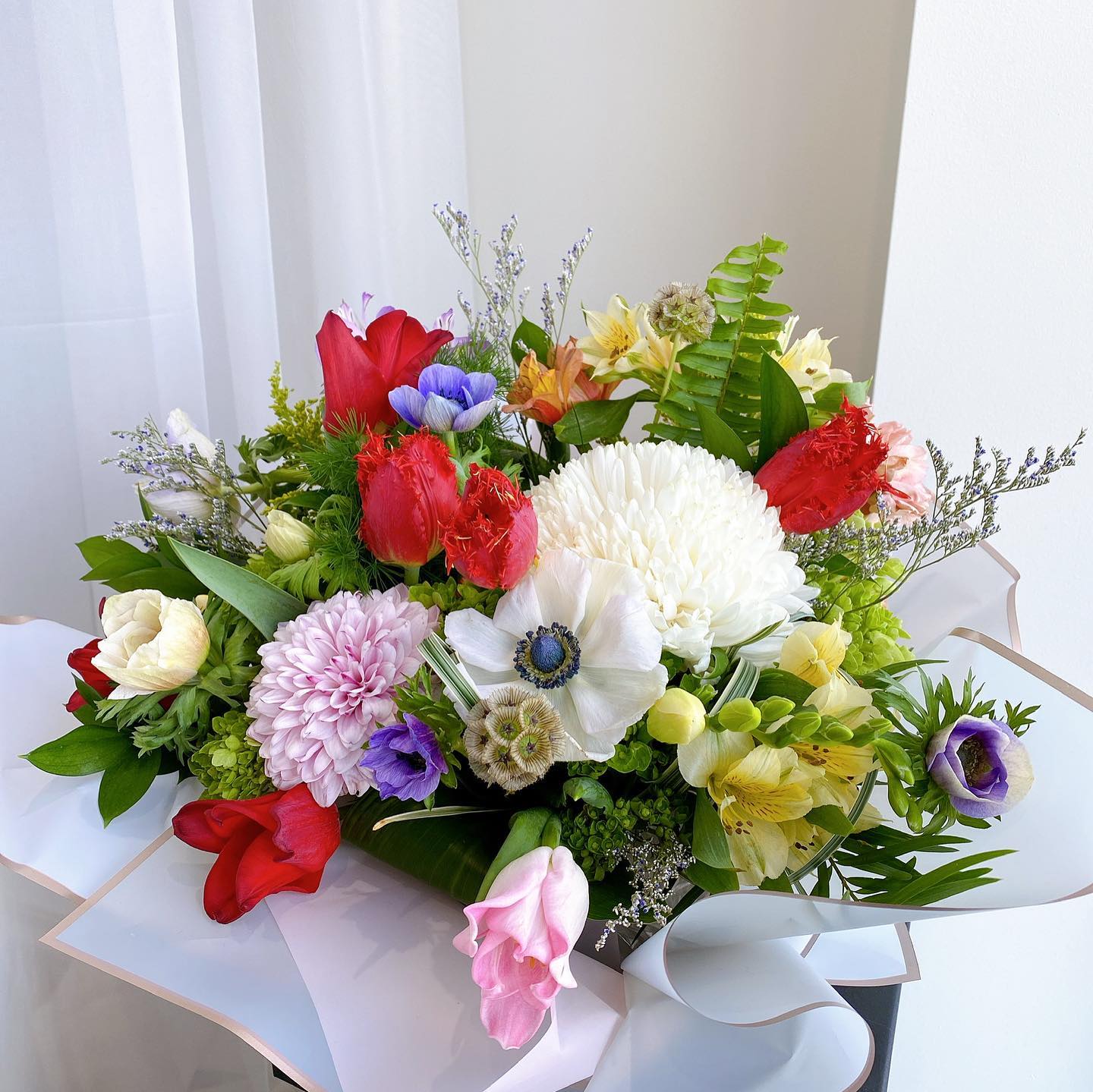 – Lors du déballage de votre bouquet noué à la main, retirez uniquement le cellophane et le ruban d’emballage ! Le fil de fer serré autour des tiges de vos fleurs est ce qui permet de conserver la forme de votre bouquet que le designer a créé avec art et soin pour vous.